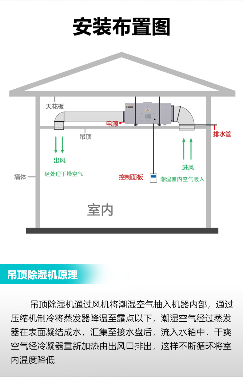 欧湿工业除湿机138L仓库吸潮器地下室商用除湿器大功率吊顶抽湿机